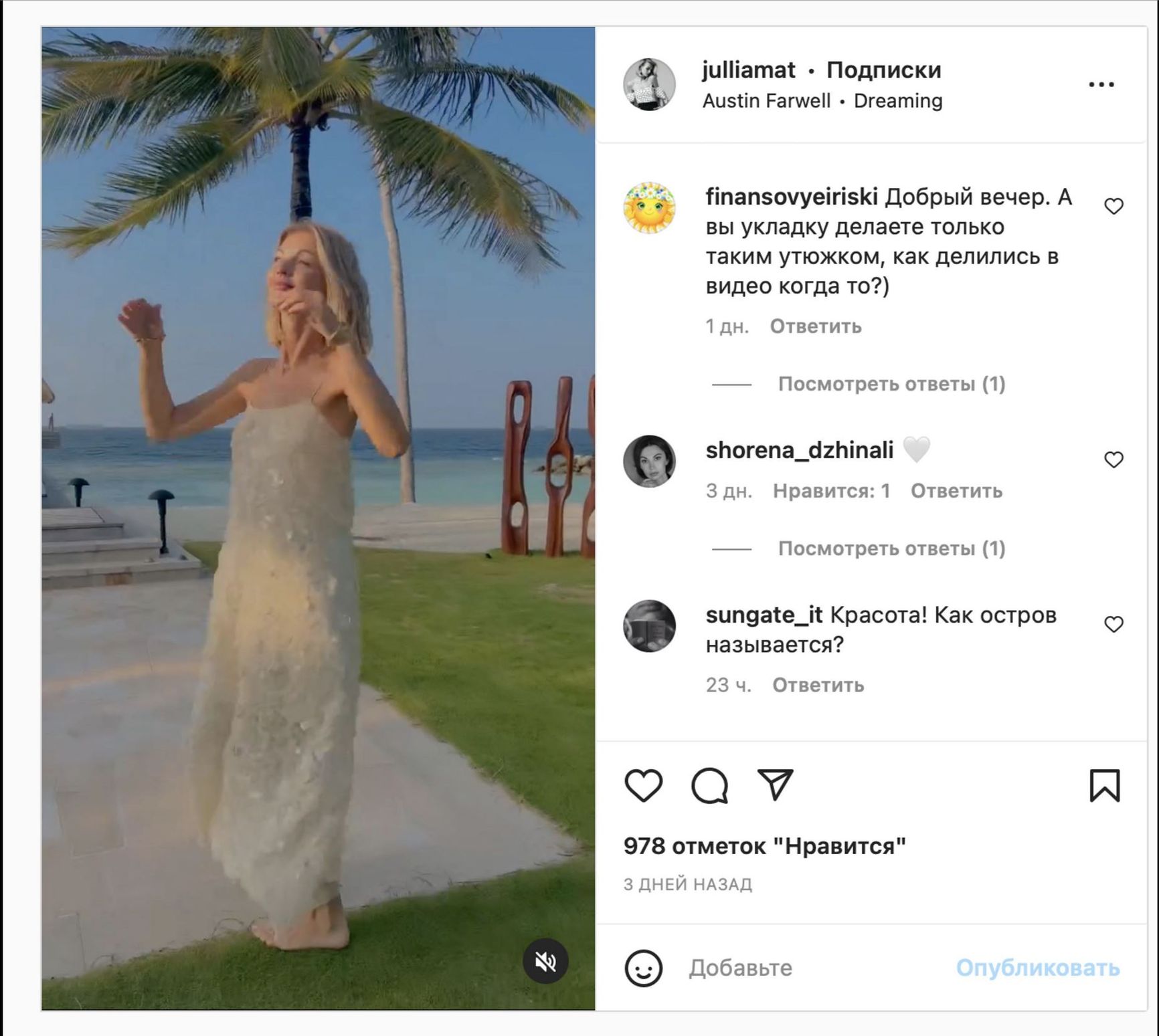 State Duma Vice Speaker Alexander Zhukov’s daughter-in-law spent the fall on the Greek island of Mykonos. She went to Bali to for the New Year celebration.