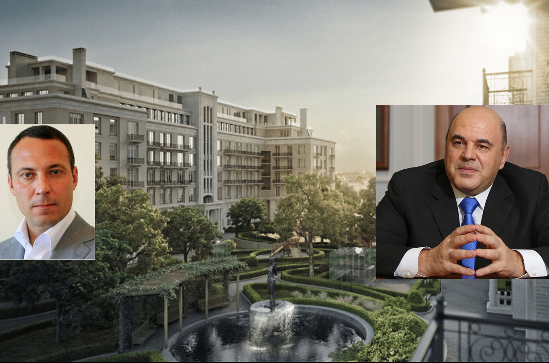 По подсчетам ФБК, в это имущество входят: дача на Рублевке (1,5 млрд рублей), дом сестры Мишустина в «Агалоров Эстейт» (400 млн рублей), квартира сестры в «Найтсбридж парк» (200 млн рублей), участок на Новой Риге (30 млн рублей), здание на Тверском бульваре 1/4 (250 млн рублей), квартиры детей на Фрунзенской (400 млн рублей), квартира детей на Трехгорном Валу (выдана Мишустину управделами президента) за 40 млн рублей.