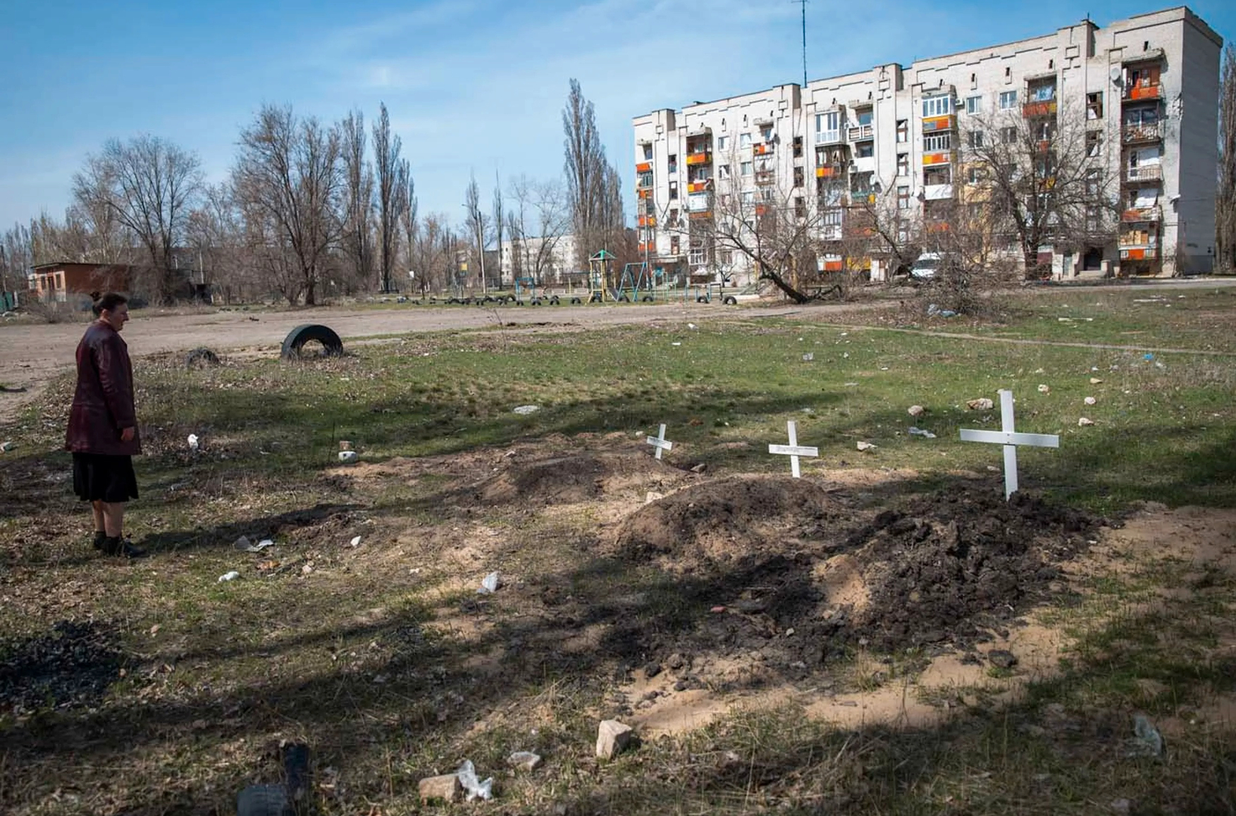 Он отметил, что кладбища в регионе находятся за чертой городов и из-за обстрелов хоронить людей там сейчас невозможно. Захоронения в городах, по словам Гайдая, организуют в относительно безопасных местах. В Северодонецке могилы роют трактором и систематизируют их в реестре. За 48 дней войны там было сделано около 400 захоронений. В Лисичанске погибших хоронят в братских могилах, в Попасной и Рубежном — во дворах жилых секторов силами местных.