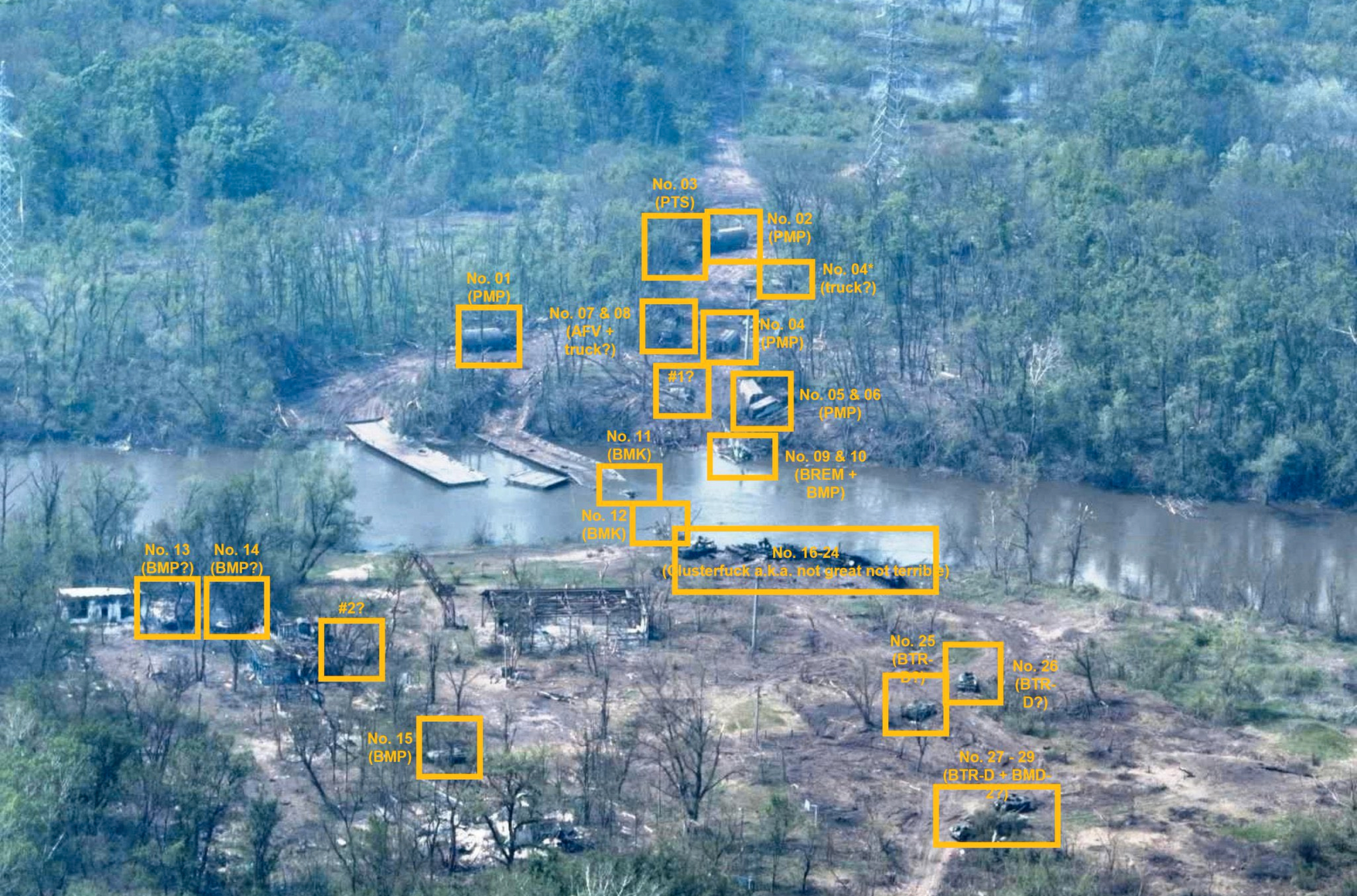 BlueSauron: за четыре дня на переправе через реку Северский Донец были уничтожены или брошены 73 единицы российской военной техники