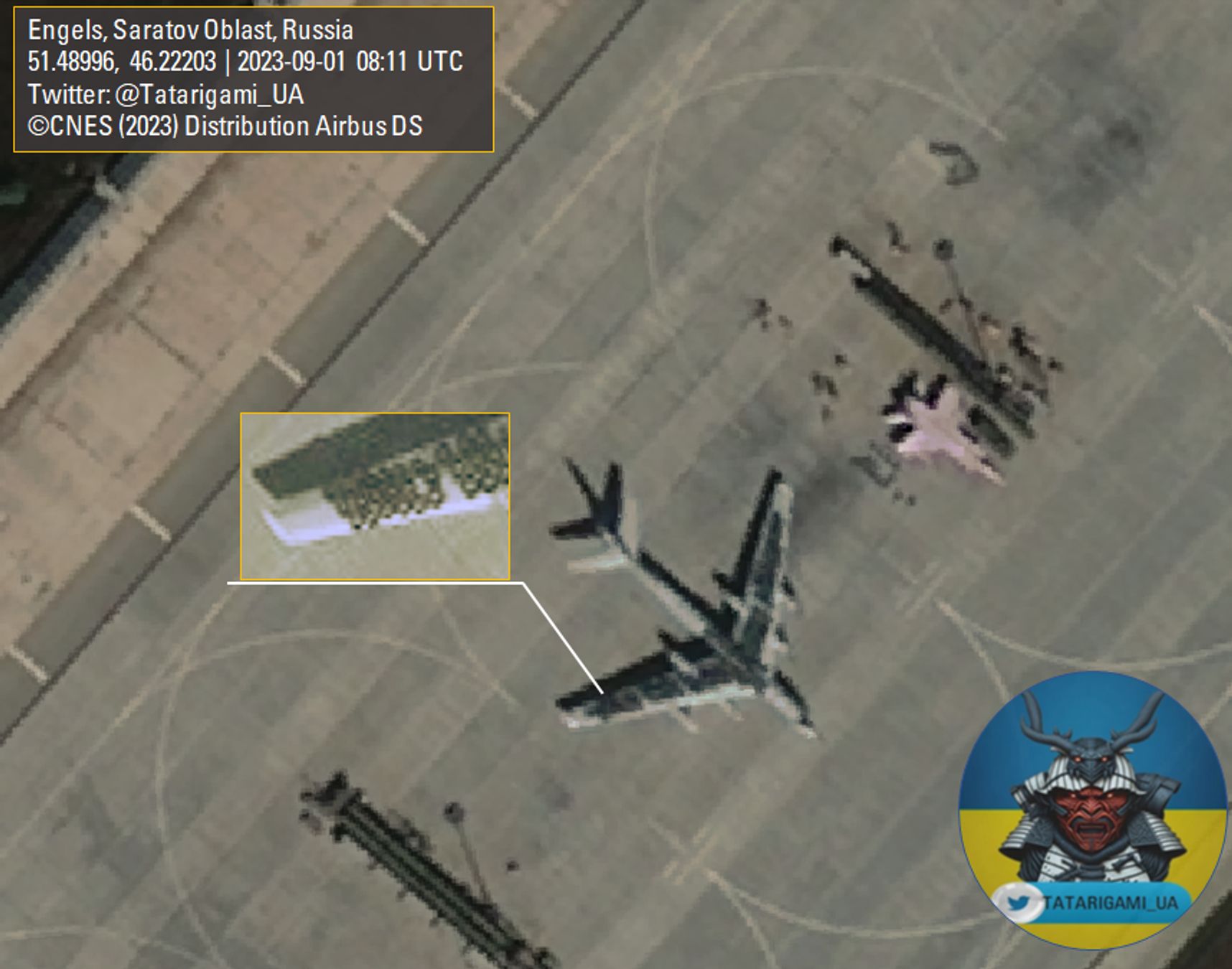 Кроме того, исследователь Бенджамин Питте на основе анализа спутниковых снимков делает вывод, что, вероятно, повреждения получил еще один (пятый) самолет — ранее было известно о двух достоверно уничтоженных и двух поврежденных бортах.