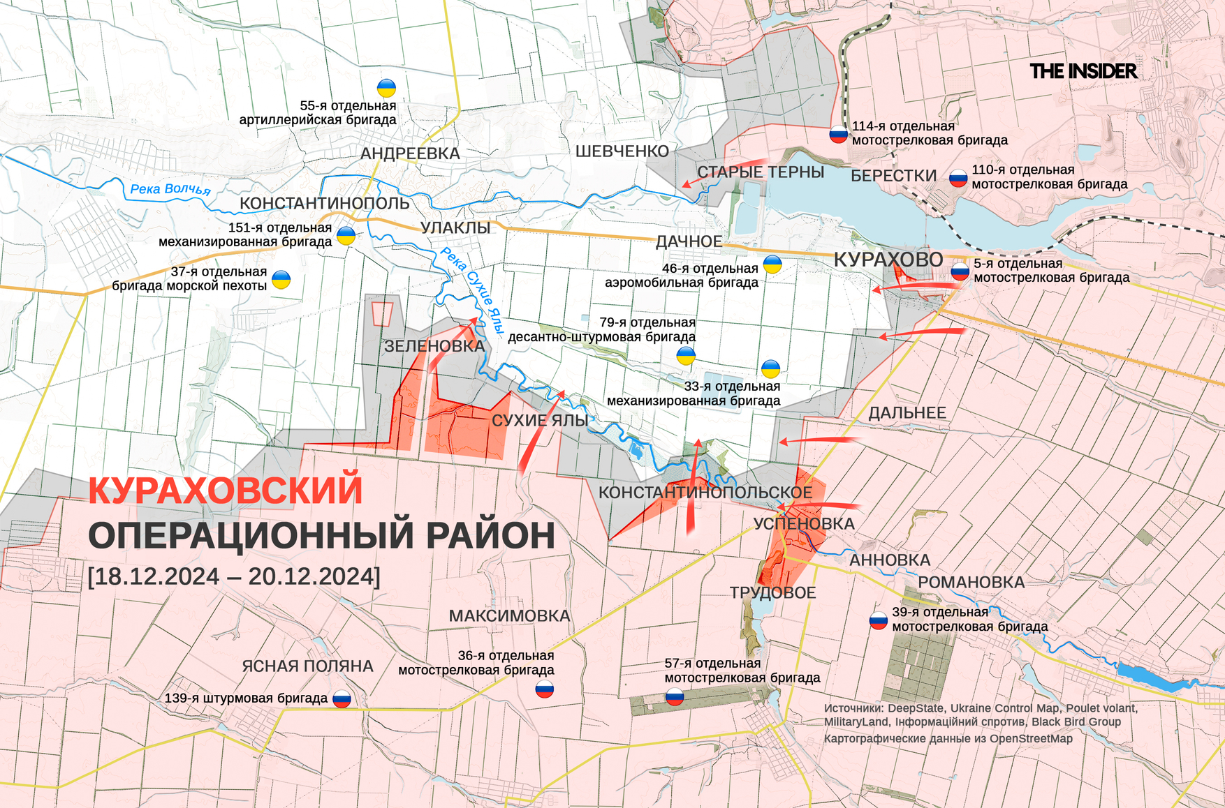 DeepState сообщает, что ВС РФ захватили Константинопольское (до 2016 года — Островского) и продвинулись около Зеленовки к юго-западу от Курахова.