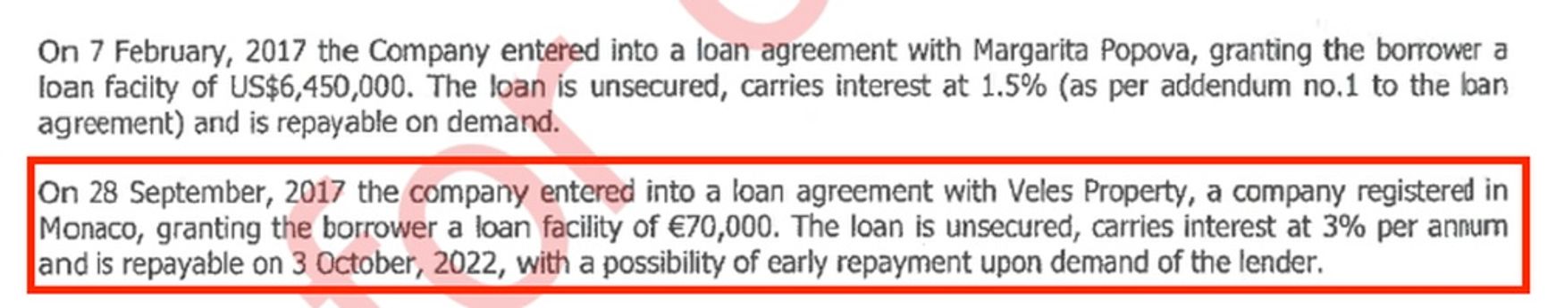 В сентябре 2017 компания Giscono Holdings Limited также дала займ фирме Veles Property из Монако, на которую записана вилла на Лазурном берегу стоимостью около 6,5 млн евро. Как отмечают расследователи ФБК, фирма также принадлежит семье Дмитриева. Скорее всего, она была названа в честь домашнего питомца Поповой — сервала по кличке Велес.