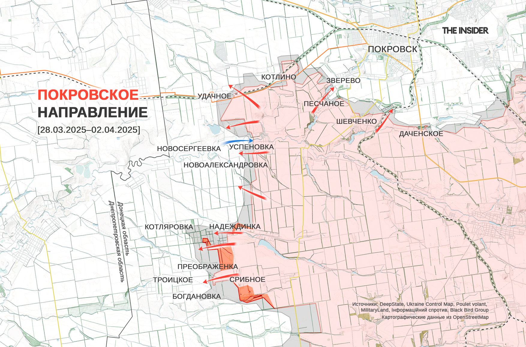 Котенок характеризует ситуацию на западном фланге покровского направления как «динамичную». По его информации, российские военные завершают штурм Преображенки, вместе с этим ВСУ пытаются отбить Успеновку, а также ведут встречные бои около Удачного.