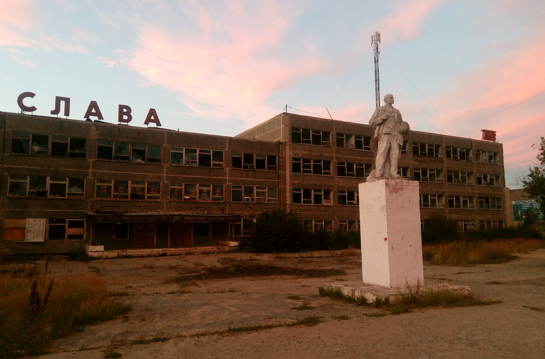 Внутри, на всех этажах, валяется переломанная в хлам мебель и бесчисленные брошенные посетителями пивные бутылки. Ветер гуляет по пустынным помещениям. В химической лаборатории - раздавленные колбы. В одной из комнат пол завален обрывками черно-белой киноленты; там, под слоем пыли, были запечатлены люди, выпускавшие продукцию на заводе много лет назад. Кадры были тщательно отрепетированы – так было положено в советские времена, в рамках государственной пропаганды.
