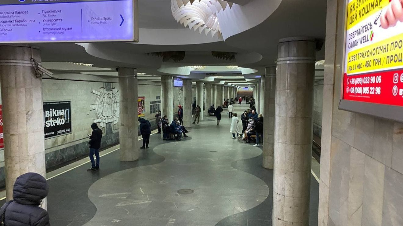 Жители Харькова прячутся от бомб в метро.