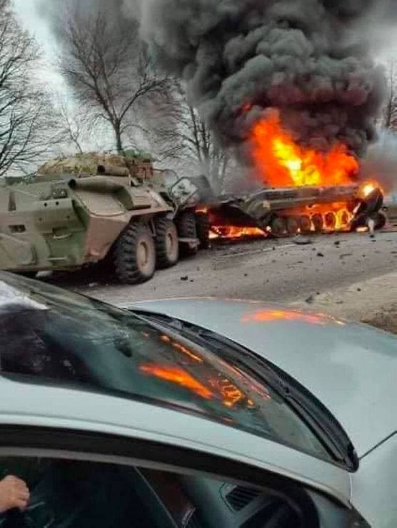 Ориентировочные общие потери российских войск за два дня по версии украинского Генштаба: 14 самолетов, 8 вертолетов, 102 танка, один ЗРК БУК.